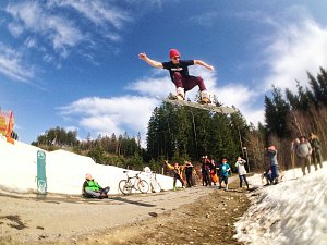 Snowborďáci si na Lipně naposled zaskákali. Přes silnici